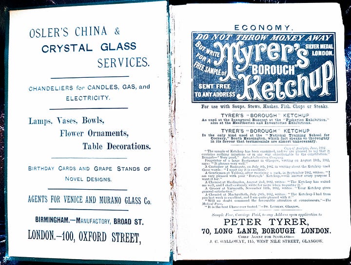 New book! From the brilliant Stephen’s Bookshop in Monmouth. Can’t wait to try me some high class cookin’ (though I can’t help but feel that this claim is slightly undermined by the advert for ketchup on the first page…)